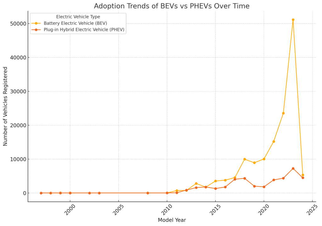 Comparison of BEV vs. PHEV Adoption Trends