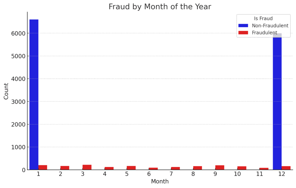 - Month of the Year: Looking at seasonal patterns in fraud activities.
