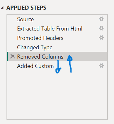 2. Right-click the ‘Removed Columns’ step and move it above the ‘Added Custom’ step to adjust the order of operations as shown below.