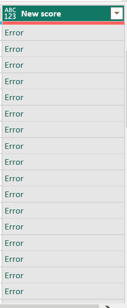 Observe that the New score column now displays “Error” instead of the calculated value.