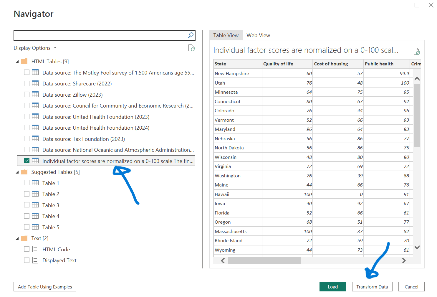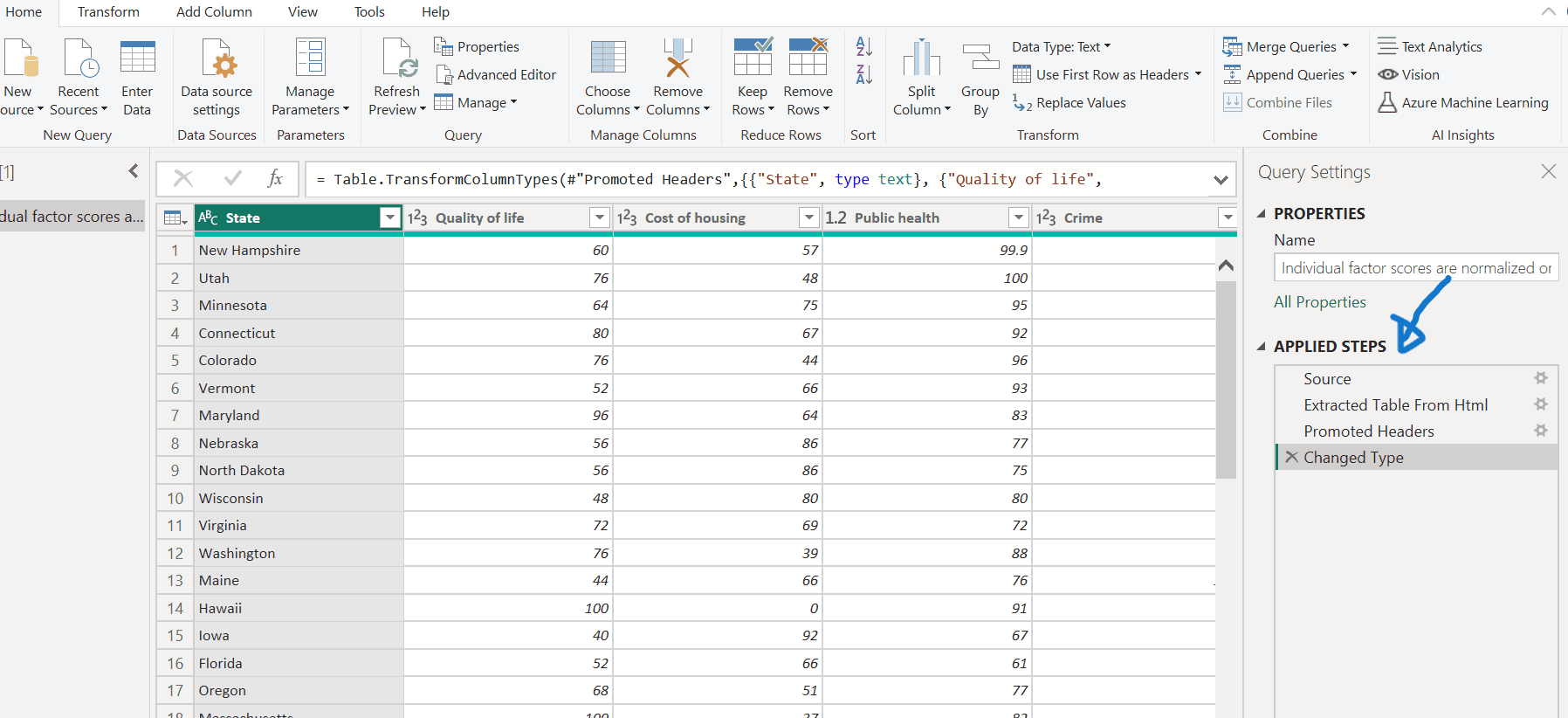 - Click on ‘Transform Data’ to open the Power Query Editor.