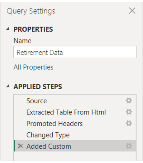 Check the ‘Query Settings’ panel to see that the newly added custom step is now listed under ‘APPLIED STEPS.’